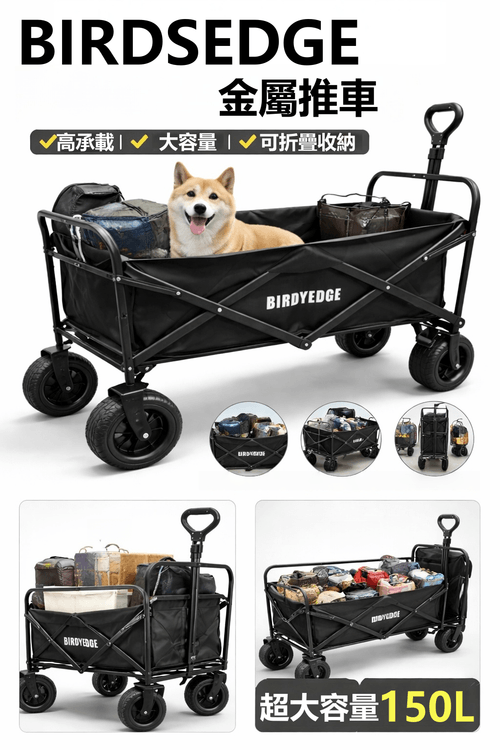 這款推車不僅適用於露營,還可以作為寵物推車使用,並可與BIRDSEDGE的電動滑板車搭配,提升使用便利性。您可以進行調整或提供更多的設計需求!
